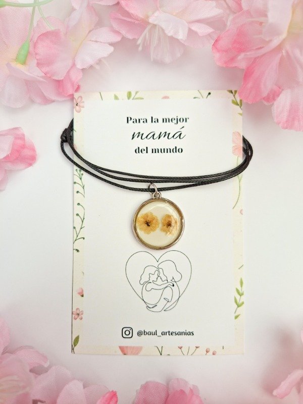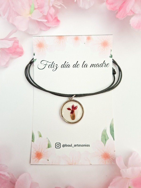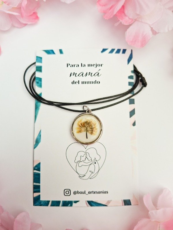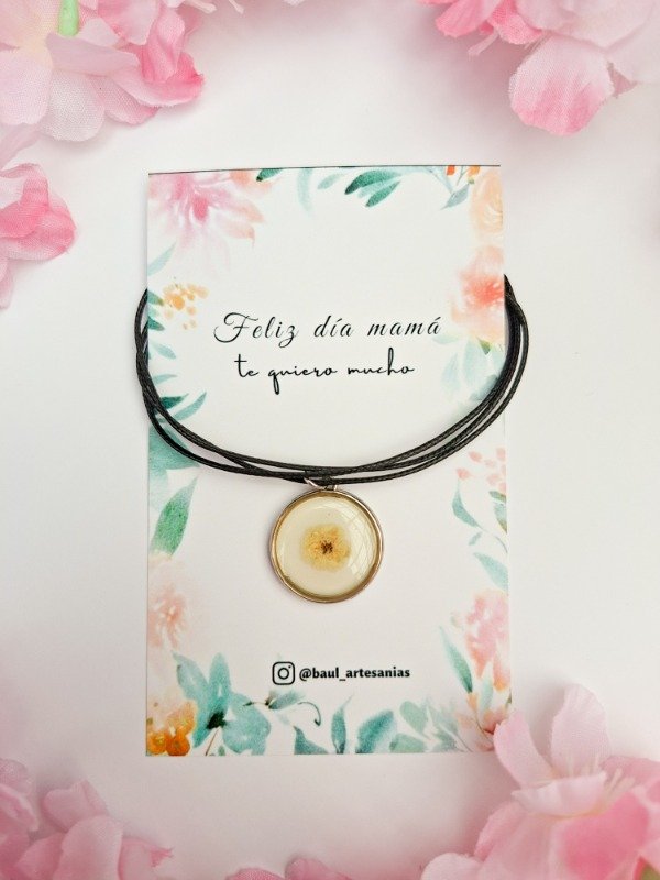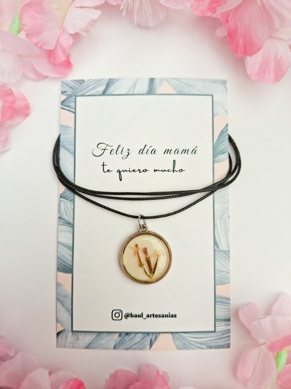 Collar de acero quirúrgico con dije artesanal de resina con flor natural.